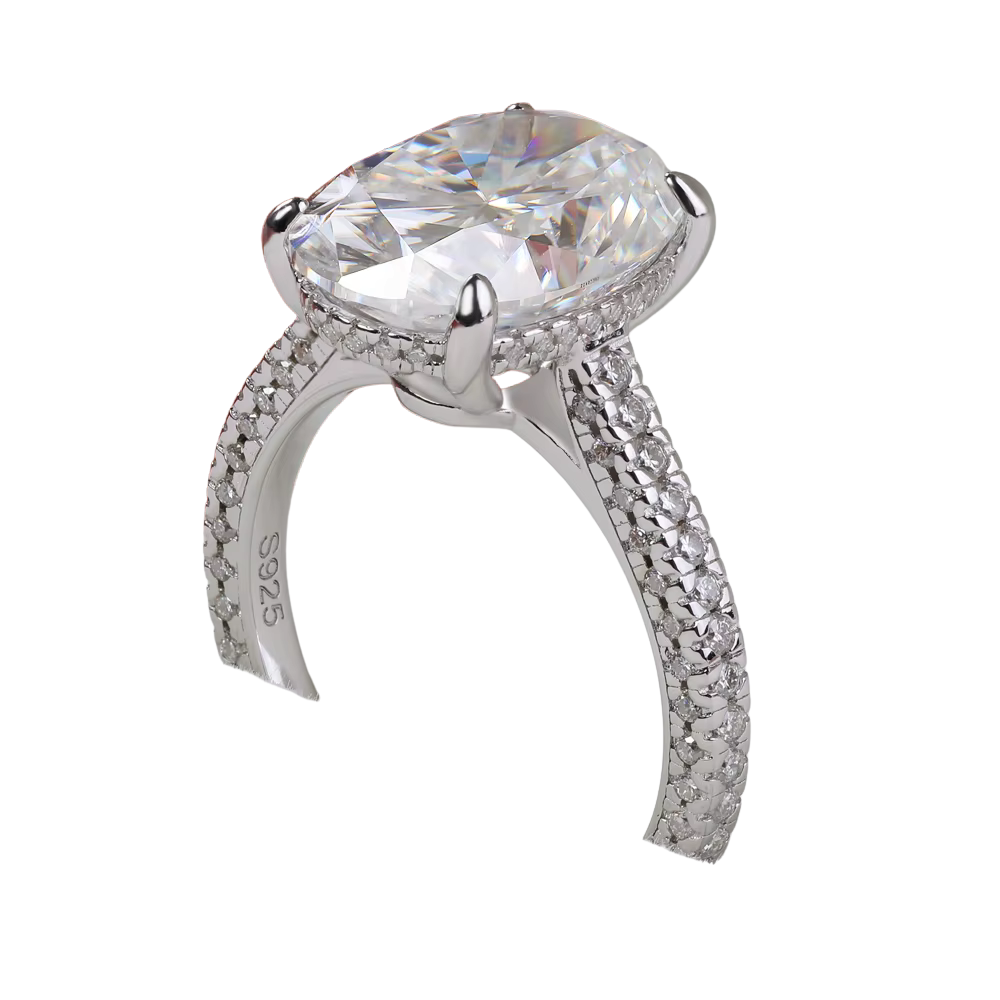 Striking in its simplicity and unmatched in its radiance, The Élan Oval Moissanite Ring is a true celebration of refined luxury. The elongated oval-cut moissanite gemstone is designed to amplify brilliance and elegance, set flawlessly to showcase its exceptional fire and clarity. With its graceful proportions and sculpted band, this ring delivers a modern heirloom crafted to be worn, admired, and remembered.
